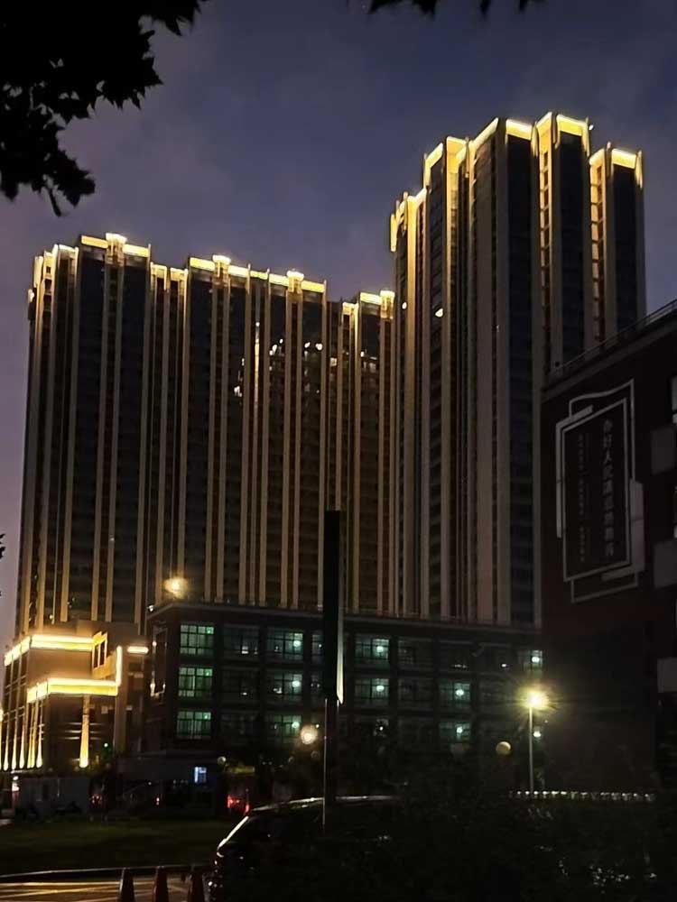 簡(jiǎn)介—— 蔚來(lái)熙語(yǔ)項(xiàng)目位于航天城航天中路與神舟二路十字東南角,項(xiàng)目占地15畝,由2棟公寓及其商業(yè)生活配套組成,Art deco的建筑風(fēng)格。我司承擔(dān)外立面亮化工程,對(duì)樓體頂部打亮及樓體線(xiàn)條的勾勒,做輪廓亮化,突出整體建筑,美化樓體。